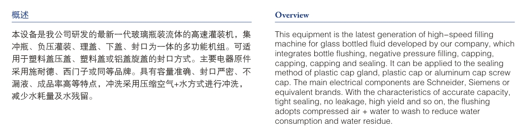 首頁 - 產(chǎn)品展示 - 玻璃瓶沖瓶、灌裝、封口三合一機(jī) - CGZ 玻璃瓶沖瓶、灌裝、封口三合一機(jī)